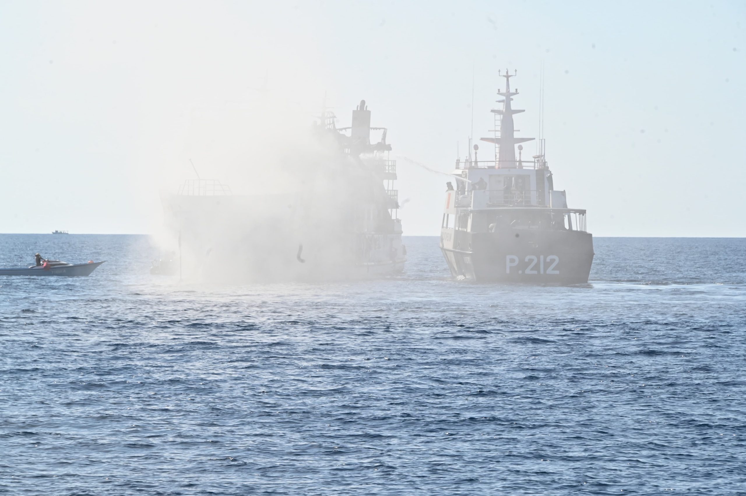Upaya pendinginan kembali dilanjutkan pada Rabu (23/7) pagi menggunakan Kapal KN Pasatimpo P.212 dan KN.331 dari Pangkalan Penjagaan Laut dan Pantai (PLP) Kelas II Bitung. Tim gabungan terdiri dari petugas PLP Bitung, KSOP Bitung, KSOP Manado, serta UPP Likupang.