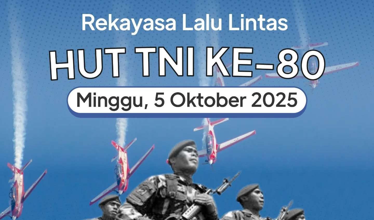 “Dalam rangka rangkaian kegiatan HUT ke-80 TNI, akan dilakukan pengalihan arus lalu lintas bersifat situasional pada beberapa ruas jalan yang bersinggungan dengan tempat pelaksanaan Upacara HUT ke-80 TNI,” kata
