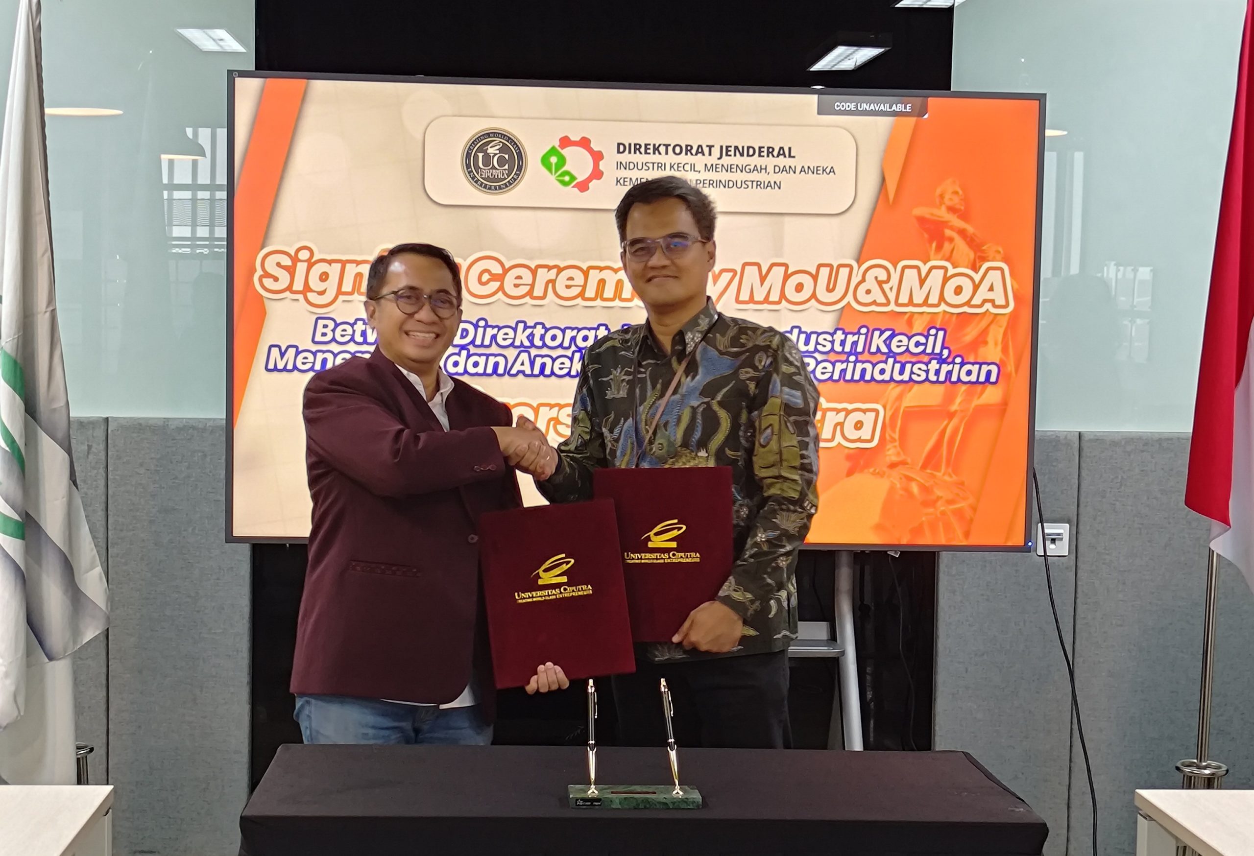 Kerja sama ini diresmikan pada Senin (22/9) lalu di kampus UC Surabaya. Penandatanganan nota kesepahaman dilakukan antara Ditjen IKMA, yang diwakili Direktur IKM Kimia, Sandang, dan Kerajinan Budi Setiawan, dan Rektor UC Wirawan Endro Dwi Radianto.