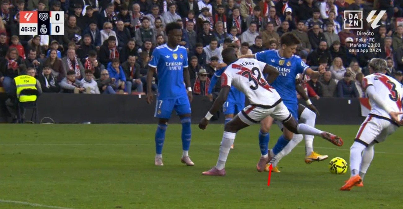 Dua menit berselang, Madrid hampir bikin gol. Umpan silang Kylian Mbappe dari sisi kiri tak bisa dihalau dengan baik lini belakang Rayo.