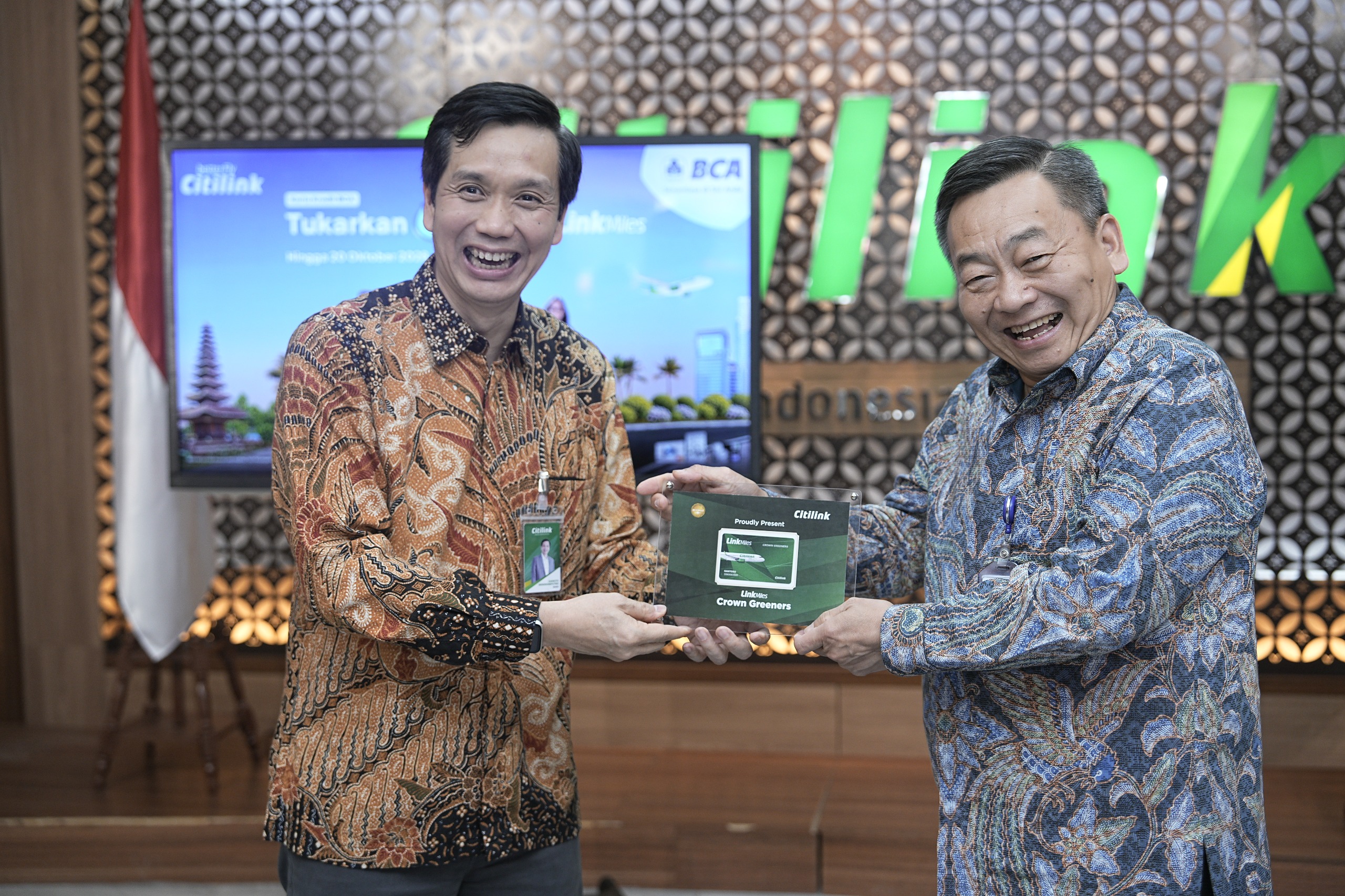 Kerja sama ini diresmikan melalui penandatanganan Direktur Utama Citilink, Darsito Hendroseputro, dan Direktur BCA, Santoso, di Tangerang, Kamis (13/11).