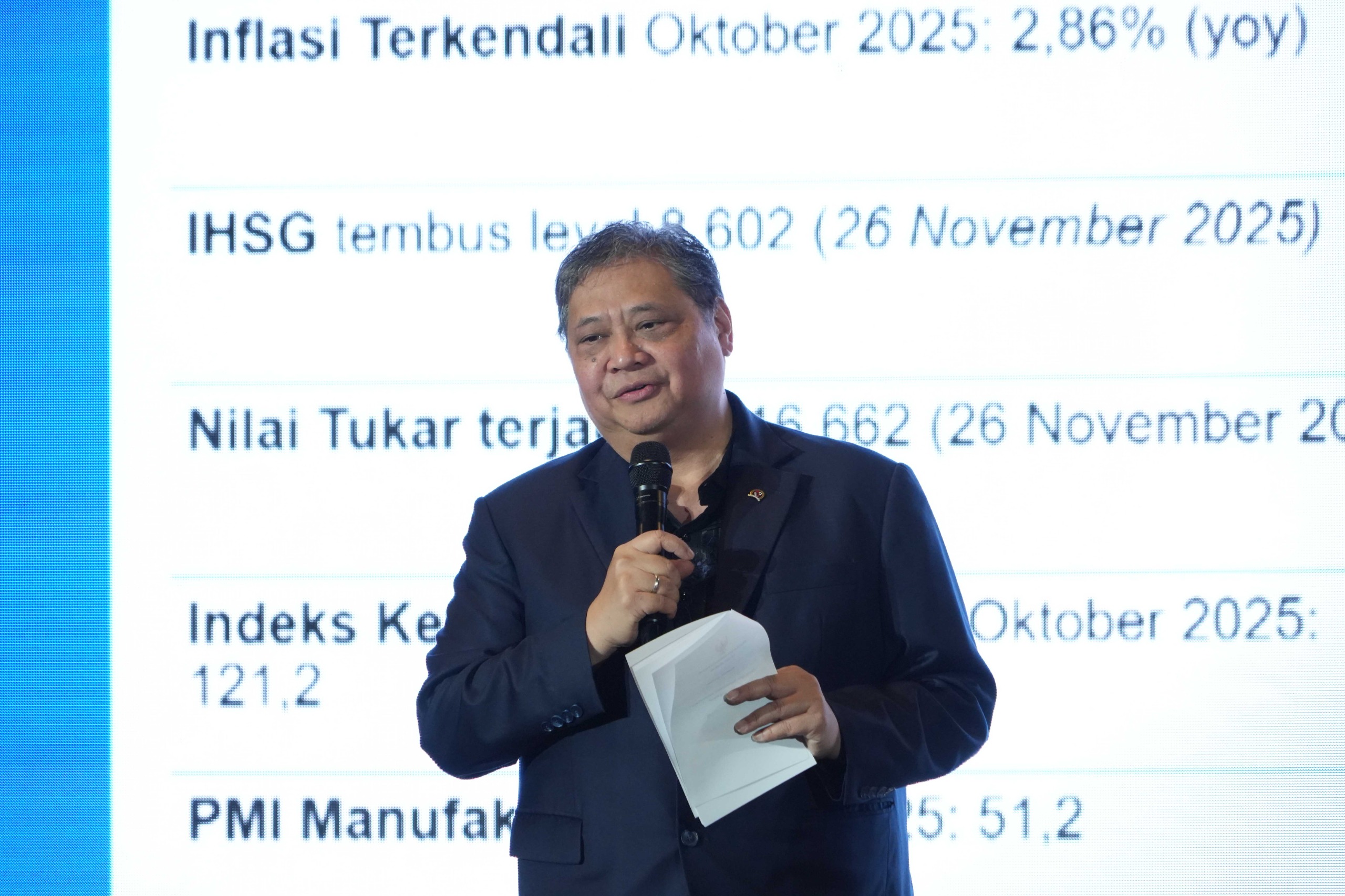 Airlangga menjelaskan pemerintah sudah mengantisipasi tekanan global sepanjang 2025. Ia menyebut stabilitas makro ekonomi masih terjaga, mulai dari penguatan indeks kepercayaan konsumen, PMI manufaktur yang kembali ekspansif, hingga pasar keuangan yang menunjukkan tren positif.