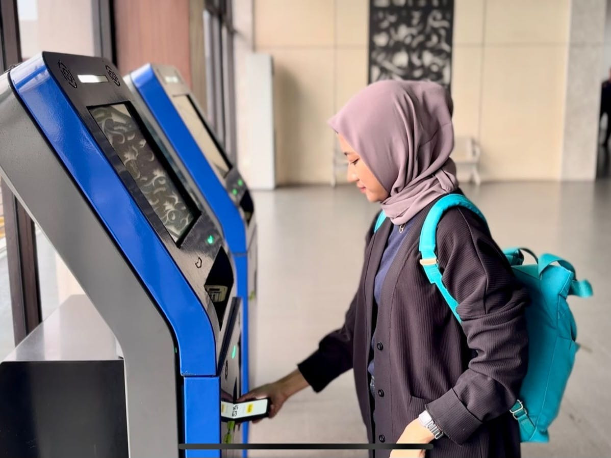 Penumpang pejalan kaki juga diarahkan ke jalur Express I atau Express II setelah melakukan check-in di vending machine.