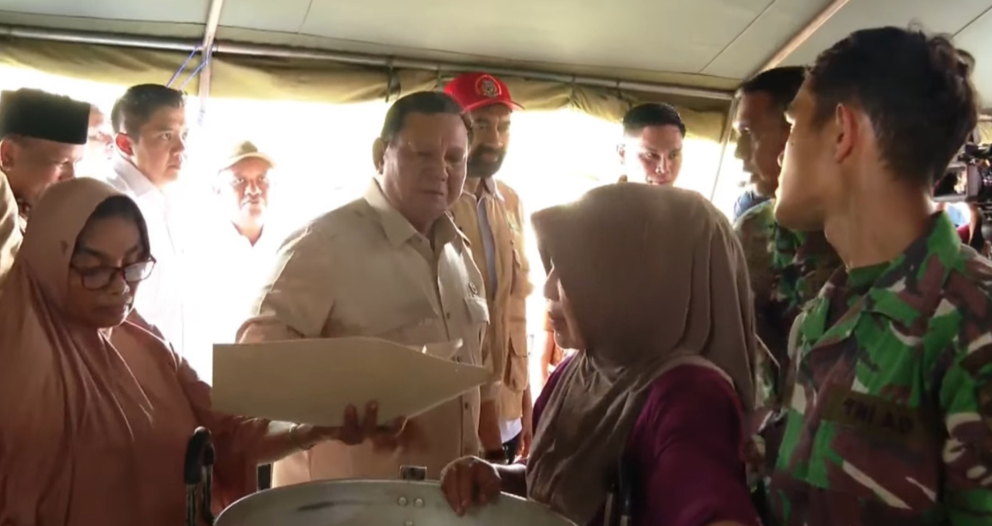 Aksi spontan Prabowo yang terekam dalam siaran langsung YouTube Sekretariat Presiden menjadi sorotan. Setibanya di tenda dapur umum berukuran besar, Prabowo langsung menghampiri anggota TNI dan ibu-ibu yang bertugas memasak.