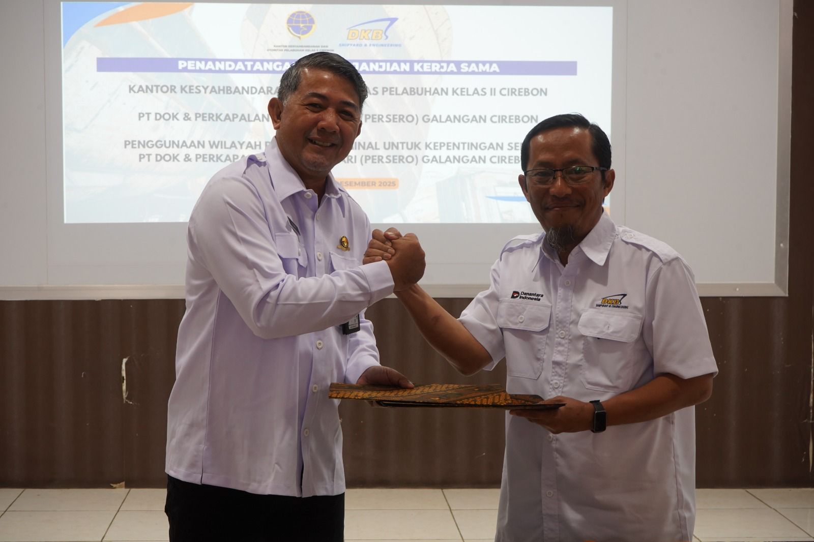 Penandatanganan perjanjian kerja sama ini dilaksanakan oleh Ferry Anggoro Hendianto selaku Kepala Kantor KSOP Kelas II Cirebon dan Mochamad Sjamsul Arif selaku General Manager PT Dok dan Perkapalan Kodja Bahari (Persero) Galangan Cirebon.
