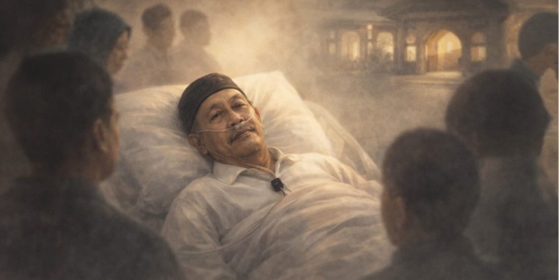 Selang oksigen menyembul dari hidung, dan mata yang sayu itu justru memancarkan ketenangan yang tak lazim. Di sekelilingnya, keluarga dan sahabat berdiri setengah menahan harap, setengah menahan air mata. Seolah-olah mereka sedang menunggu sesuatu yang tak tertulis di papan jadwal perawatan dokter.