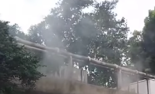 Asap mengepul ke udara dari ruang genset trafo berukuran 6×4 meter yang terletak di sisi selatan komplek Kantor Wali Kota Jaksel.