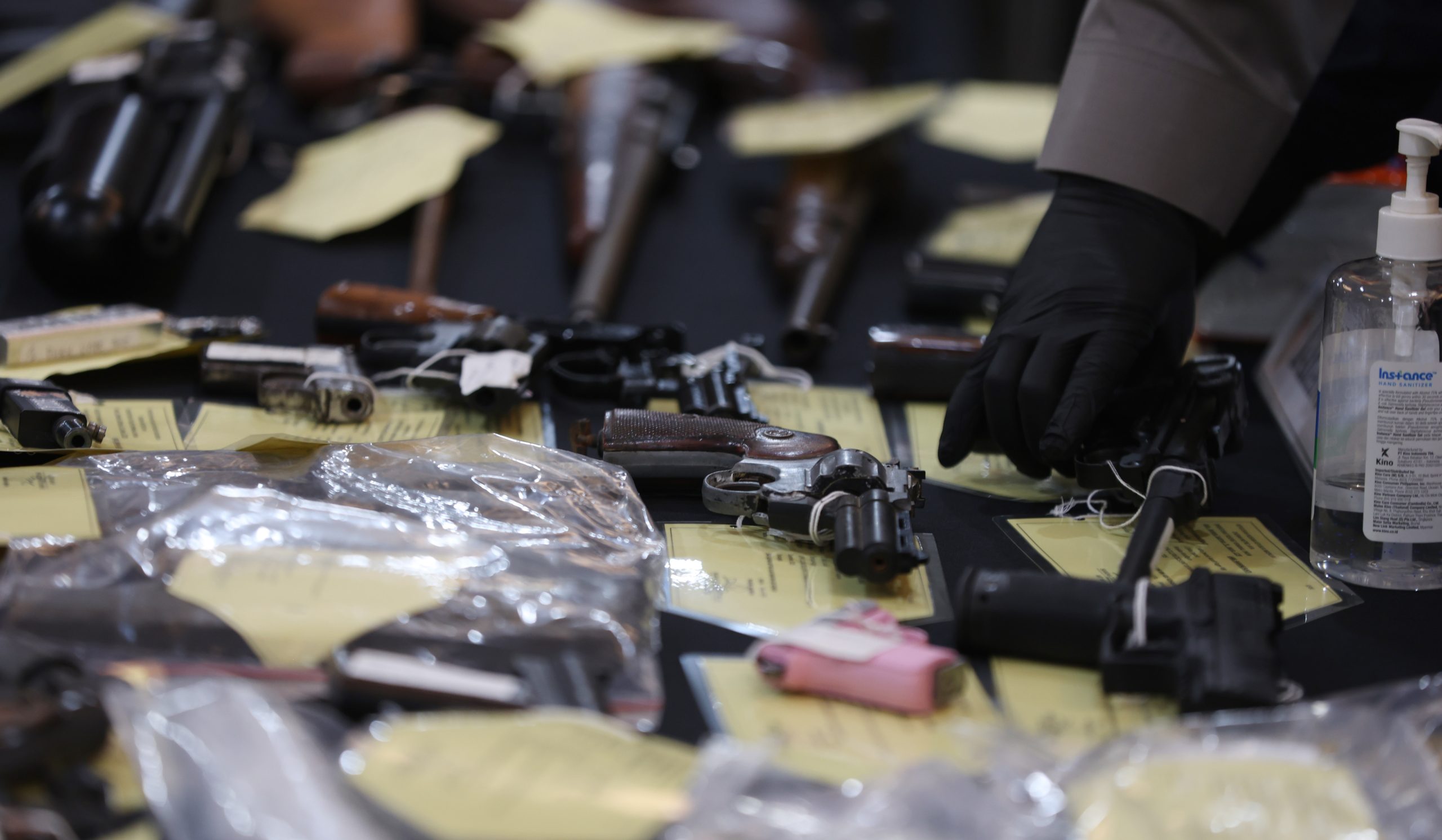 Polisi menyita 128 barang bukti termasuk senjata api dari lima TKP berbeda. Senjata api yang disita di antaranya produk rakitan, air soft gun, mimis, hingga magazen berbagai tipe.