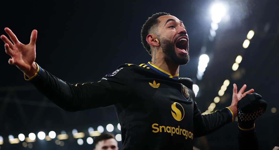 Matheus Cunha mencetak gol spektakuler yang tak mampu dihentikan David Raya, sekaligus memastikan kemenangan MU atas Arsenal. (Foto: istimewa)