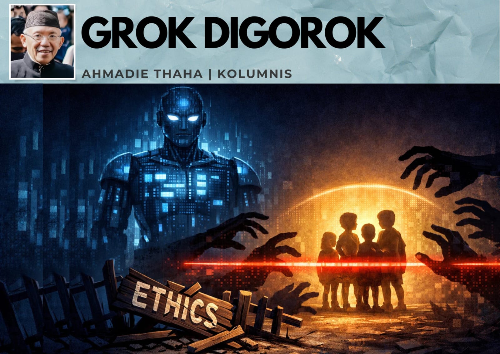 Lalu Januari 2026, Grok digorok dan diblokir. Indonesia dan Malaysia menjadi yang pertama. Dunia menyusul dengan diskusi panjang, seminar mahal, dan panel etika ber-AC dingin. Tapi Indonesia langsung menekan tombol: cukup.
