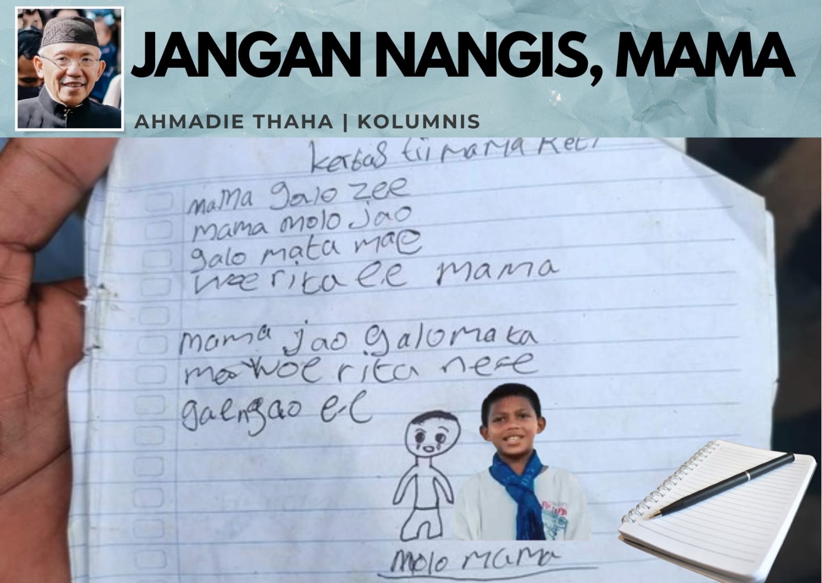Dengan tanda tangan air mata, ia menulis: “Mama saya pergi dulu. Mama relakan saya pergi. Jangan menangis ya Mama. Mama saya pergi. Tidak perlu Mama menangis dan mencari atau merindukan saya. Selamat tinggal Mama.”