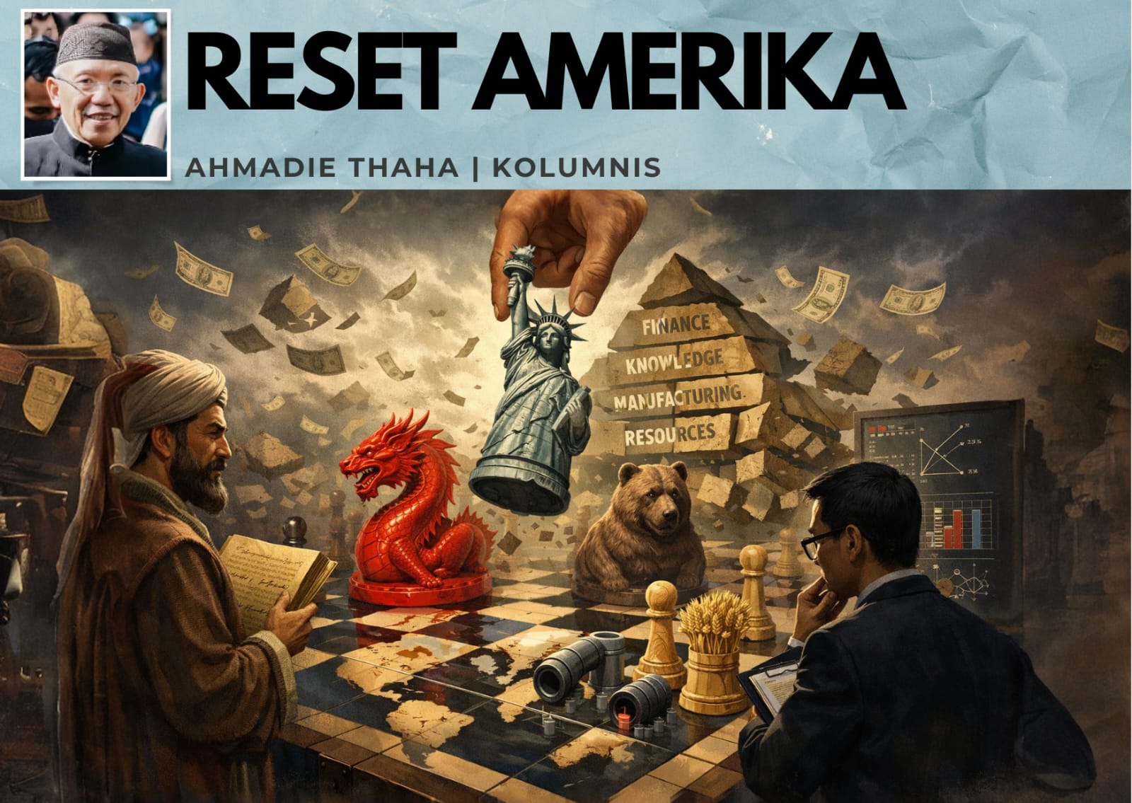 Mungkin itulah yang dimaksud Jiang dengan reset Amerika. Bukan akhir dari Amerika, tetapi akhir dari satu cara Amerika memimpin dunia.