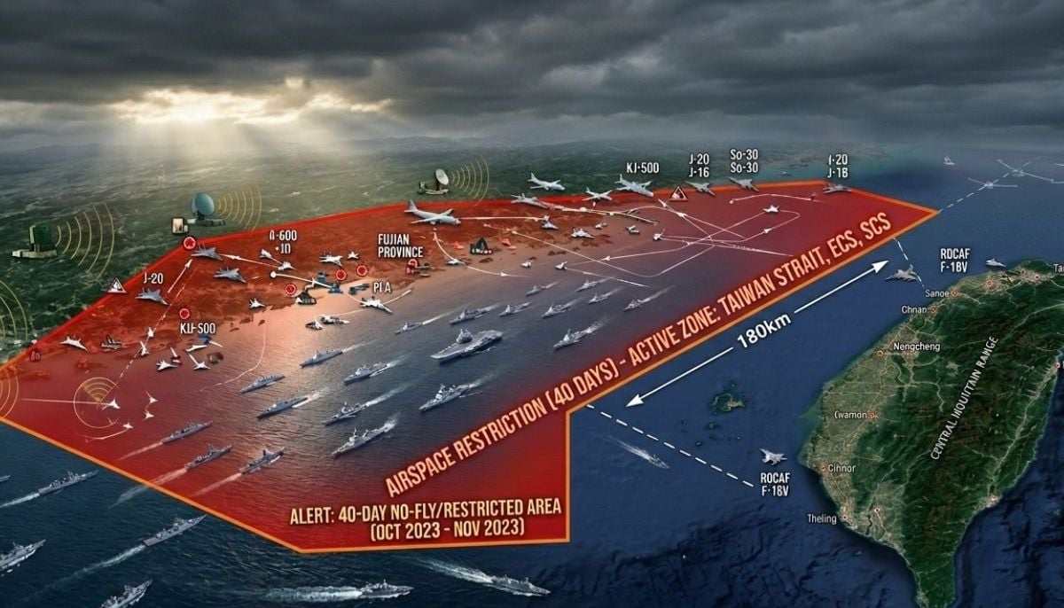 Zona penutupan wilayah udara yang tidak biasa ini, dilakukan menyusul pengurangan tajam penerbangan militer China di sekitar Taiwan bulan lalu.